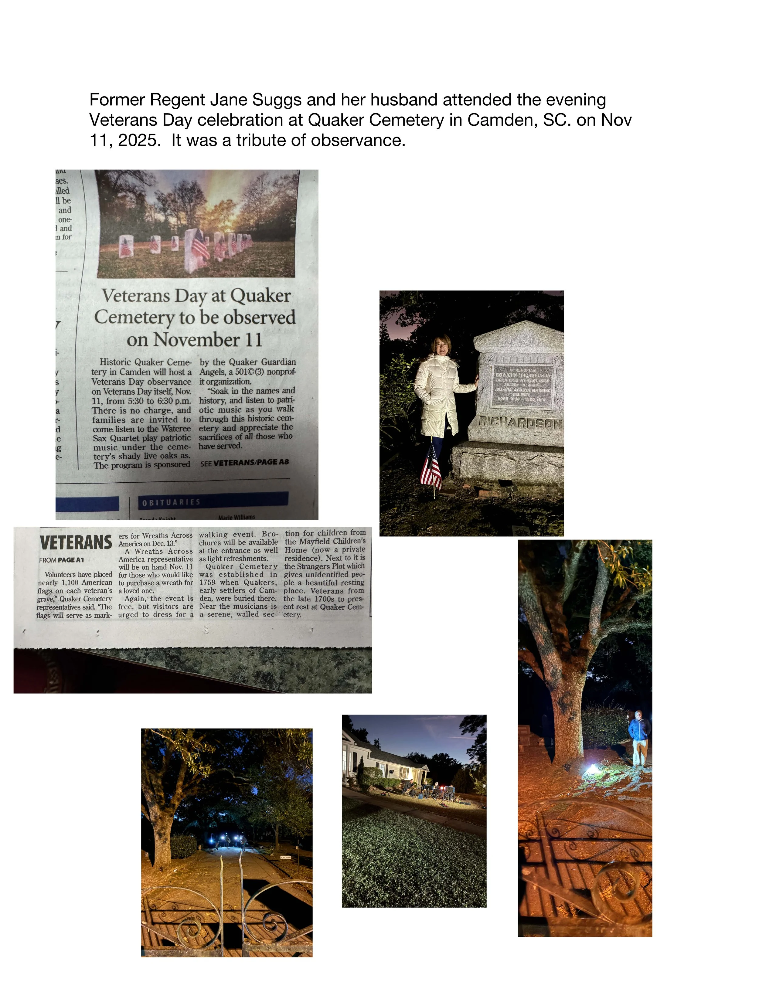 Congratulations to our Ann Pamela Cuningham chapter member for receiving 1st place in the SCDAR Most Patriotic Photo Contest for Most Patriotic Photo of the U.S. flag & second place overall for her Korean War Memorial photo taken at dusk in May 2025!