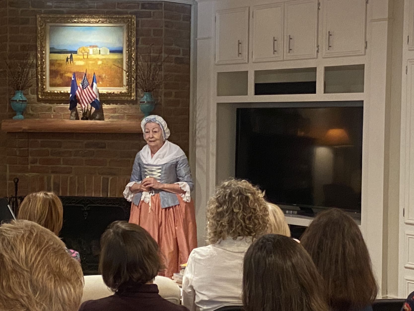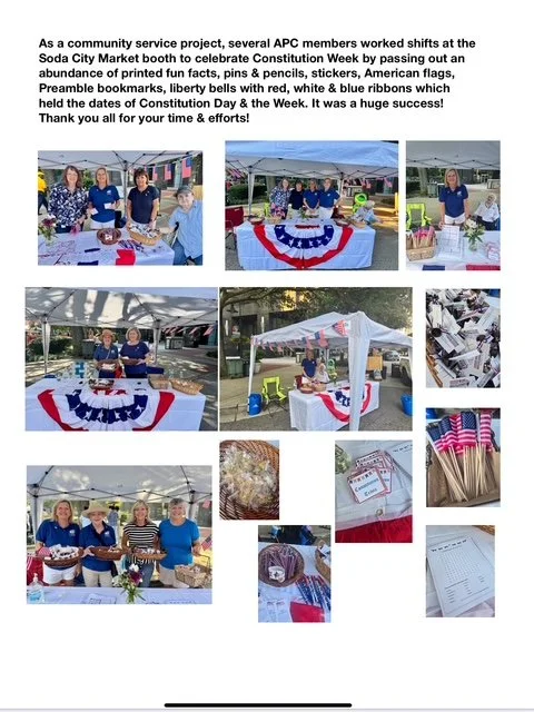 APC Daughters were introduced to Eliza Lucas Pinckney portrayed by a living history interpreter. She is the author of Eliza Lucas Pinckney: Colonial Plantation Manager and Mother of American Patriots which chronicles Eliza's life in the 18th century. Members and guests were captivated with the period dress and her speaking in accepted verbiage of the day.
