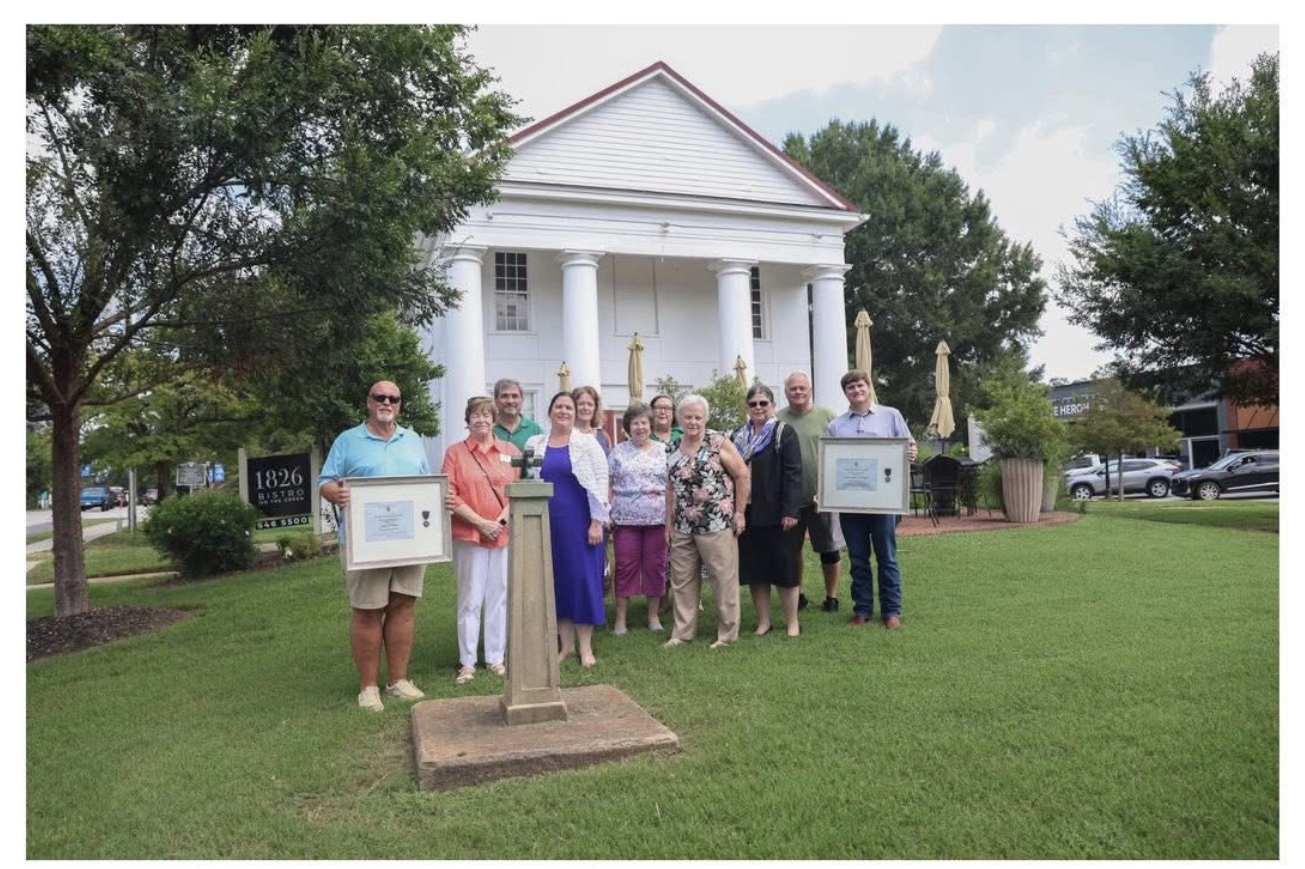 Members of the Lilly McIlhaney Bowen Chapter, NSDAR, with historic preservation honorees on the Square in Downtown Pendleton, South Carolina